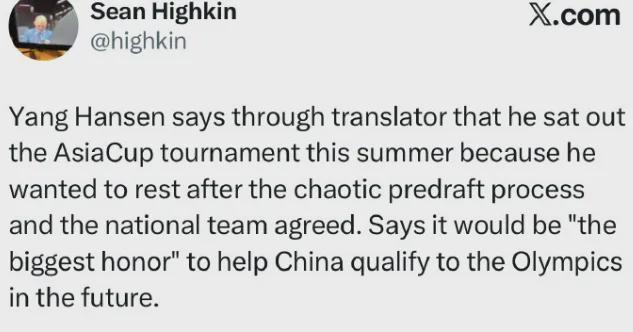 相关阅读:杨瀚森奥运会NBA中国男篮职业生涯波特兰开拓者