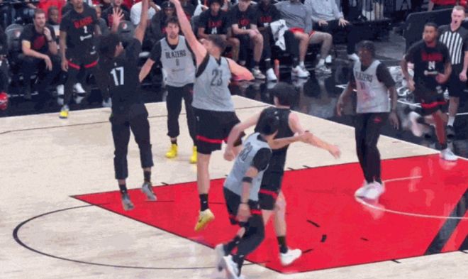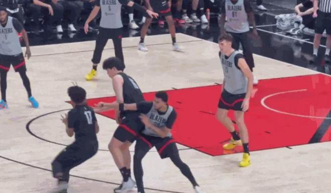 杨瀚森开拓者主场首秀,与最主要竞争对手24届首轮7号秀克林根展开了正面对决,后者上赛季常规赛场均出战约20分钟贡献6.5分7.9板1.1助1.6帽,投篮命中率53.9%。从放出的画面来看,杨瀚森有着惊艳的发挥,内线利用脚步单吃克林根。接队友的传球,在克林根头上打成2+1。手递手传球,助攻夏普空位三分命中。还是手递手传球,夏普完成抛投终结。上述的4个回合,将杨瀚森的特点发挥得淋漓尽致,老练程度完全不像一个NBA新秀,并且与队友建立了良好的化学反应,这些都有助于他能更好获得开拓者教练组的信任,从而赢得更多的上场时间。最终全场打完,这一场为开拓者队内公开训练赛,杨瀚森所在的黑队43-42险胜灰队,虽然没有详细的数据统计,但他至少有着5分2助进账,同时可以看出我们这位中国球员会是球队的第二中锋。赛后,迎来了整蛊新秀环节,作为25届首轮16号秀杨瀚森背着粉色小书包跟着啦啦队,在一众老大哥注视下翩翩起舞。还别说,杨瀚森跳舞协调性和节奏都挺好的,也许是一个被篮球耽误的伟大舞蹈家。本月9日,开拓者就迎来今年季前赛的首战,客场VS勇士;10月11日,主场VS国王;10月15日,主场VS勇士;10月17日,客场VS爵士。特别开拓者VS勇士,不仅流量拉满,还能有效检验杨瀚森在追梦格林&霍福德两位全明星&总冠军内线大闸围追堵截下是否依然可以有所发挥?以及能否应对库里神乎其神的三分威胁?没有比这更好的NBA第一课。此前杨瀚森在开拓者新赛季媒体日接受采访时,表示:“未来若能帮助中国男篮重返奥运会,将会是他的最大荣誉。”