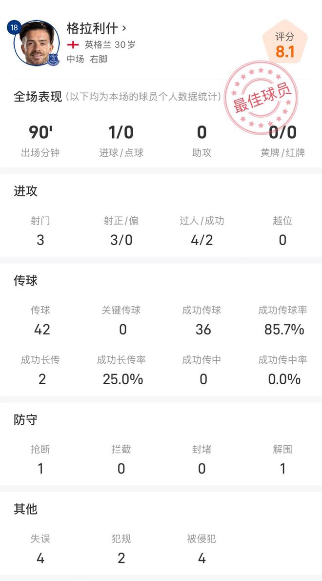 相关阅读:英超埃弗顿格拉利什积·基亚利殊