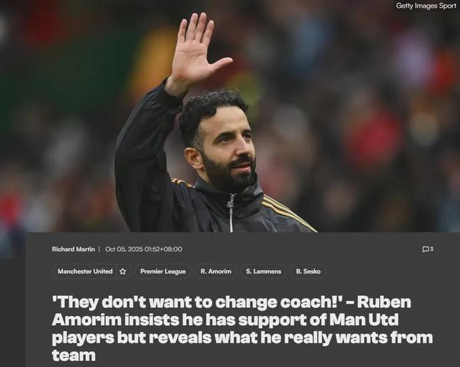 在2-0战胜桑德兰之后,阿莫林声称曼联球员依然支持他。芒特赛后表示曼联球员都支持阿莫林,对此阿莫林表示:“我知道他们想拿出最好的表现,球员们不想一直换教练。但我们要展现在行动上,有时候看看我们的球队,我确信当我们最终复盘这些比赛时,球员们也知道有时候他们可以做得更好。本周我感觉到了这点,但我们需要把这些展现在球场上,而且不仅是主场,还有客场。”