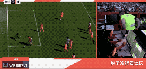 第11分钟,VAR介入,通过慢动作可以看到,和阿劳霍对抗过后,伊萨克·罗梅罗在禁区内倒地,裁判判罚点球。