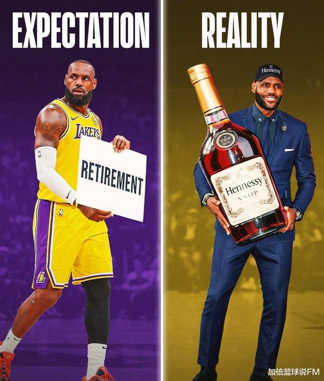 季前赛开启的同时,新赛季NBA最大的噱头诞生了,毫无疑问出自老詹。10月7日,NBA超级巨星勒布朗-詹姆斯发布社交媒体表示:“第二个决定将在10月8日公布,决定中的决定即将到来。”并配上一个视频,视频中他身穿的粉色衬衫与14年前所做“决定一”一模一样,而詹姆斯的“决定一”,正是当时震惊联盟的抱团迈阿密热火,豪组三巨头。2010年7月8日,詹姆斯在ESPN直播的特别节目《The Decision》中宣布:“我要把我的天赋带到南海滩,加盟迈阿密热火。”这一举动在当时引起了巨大争议,此前,詹姆斯已在骑士效力了7个赛季,并两度获得MVP。决定一如此重磅,那么决定二必然也不会是什么小事情。很多球迷都在猜测,老詹会在决定二中公布自己的退役时间节点,就是这个赛季结束后。也就是说,这个赛季,估计是詹姆斯职业生涯的最后一季了,要不要考虑开启退役巡演。在老詹发布决定二预告之后,球迷的气氛一度变得异常沉重,美媒NBACentral的数据模型预测,詹姆斯有52%的概率通过《第二次决定》节目宣布从联盟退役。湖人新赛季常规赛的门票暴涨,最后一场主场对阵爵士的比赛,最便宜的门票更是从85美元,直接涨到了580美元。结果,老詹的决定二令人大吃一惊,万万没想到居然是广告。在《第二次决定》节目中,詹姆斯公布了答案:他将与轩尼诗合作,推出联名限定款“勒布朗-詹姆斯臻选V.S.O.P干邑”。“非常荣幸能延续与轩尼诗的这段合作,"詹姆斯在新闻稿中表示,"瓶身设计融入了我的经典庆祝动作,这对我而言意义非凡——它象征着欢庆与联结,也正是这款产品设计的初衷。”好搞笑,不得不承认,詹姆斯是顶级的营销大师,这一波操作能让他的广告效果发挥到机制,赚得盆满钵满。不过,也确实有点把球迷,媒体,玩弄于鼓掌之间的意思,连自己人都看不下去了。