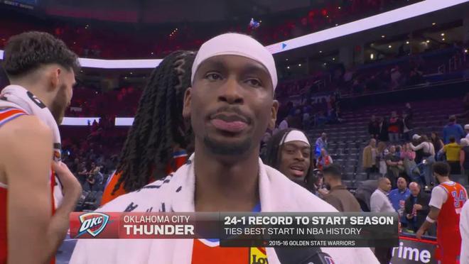 亚历山大这场球,又是三节打卡下班。(准确来说,是不到三节)出战27分钟,投篮15中11,其中三分4中3,砍下28分8助攻2篮板2抢断1盖帽,正负值+43。这是他连续第96场20+,历史第二多,将继续追逐张伯伦连续126场20+历史纪录。他虽然是上赛季的MVP和FMVP得主,但他是很难成为“末节之王”的。因为,第四节很少上班...再讲一个数据,本赛季雷霆队净胜分达到437分,创下 NBA 历史上赛季前 25 场比赛的最大净胜分差纪录。这一数字比净胜分差排名第二的2007-08 赛季的波士顿凯尔特人队,高出了90分。场均净胜17.4分...前几天已经说了,雷霆就是历史级球队。